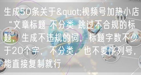 在当今数字化营销的时代,视频号已成为众多商家推广小店、吸引流量的重要渠道。然而,如何让自己的视频号在众多内容中脱颖而出,成功加热小店,成为众多商家关注的焦点。今天,我们就来分享50条关于视频号加热小店的实用标题,助你轻松提升小店流量与销量。